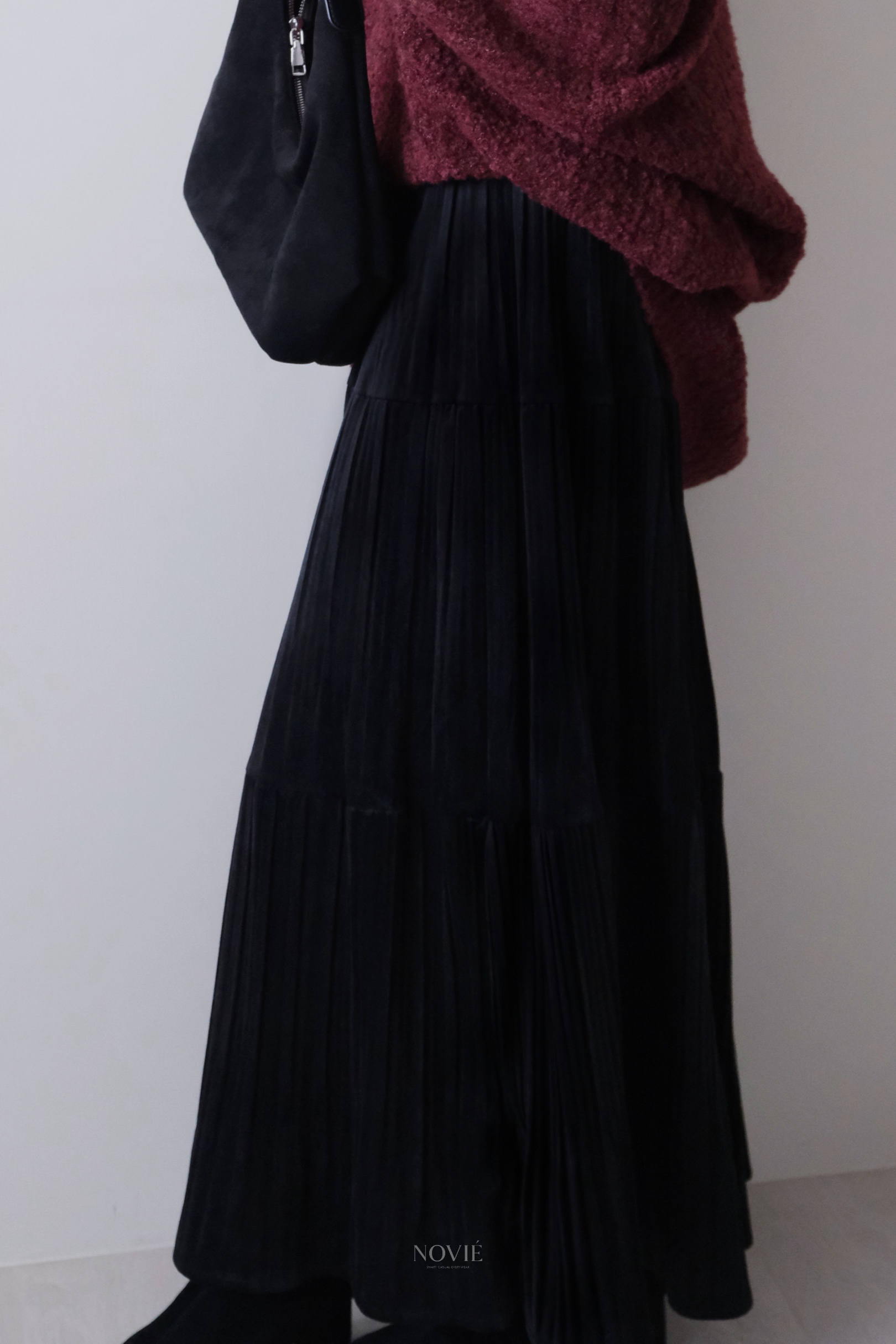 絲絨質感・百褶長裙(奶白/黑/咖)